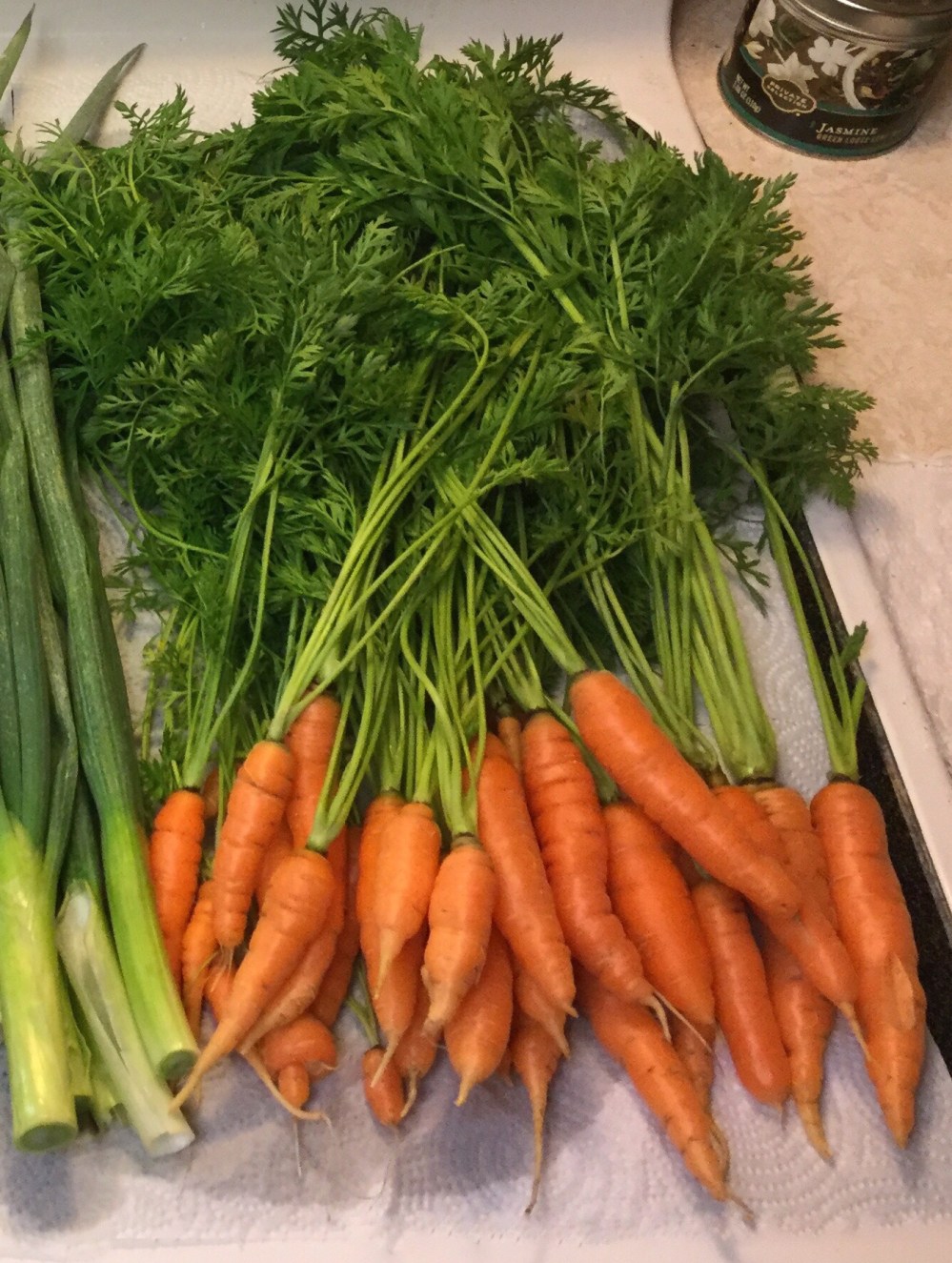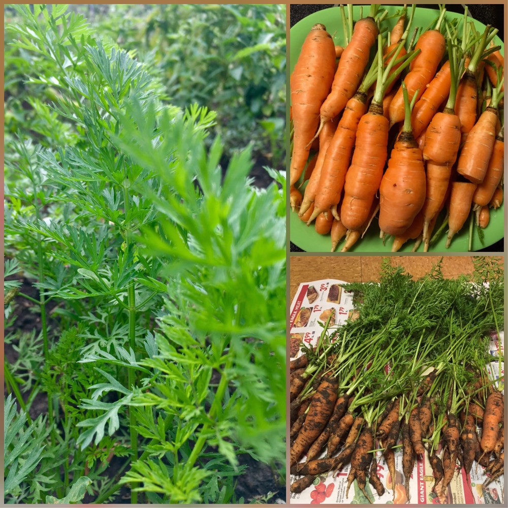 In mid-May, we made a raised bed, then sprinkled the carrot seeds and covered with a thin layer of soil. Carrot needs regular watering and well-drained loose soil; less water can cause carrot root cracks. Monarch butterfly caterpillars love carrot greens. So it’s worth to share it with them as they add beauty and diversity into our garden. After three months, we harvested our carrots and grew them twice during the season, once in May and again in August.