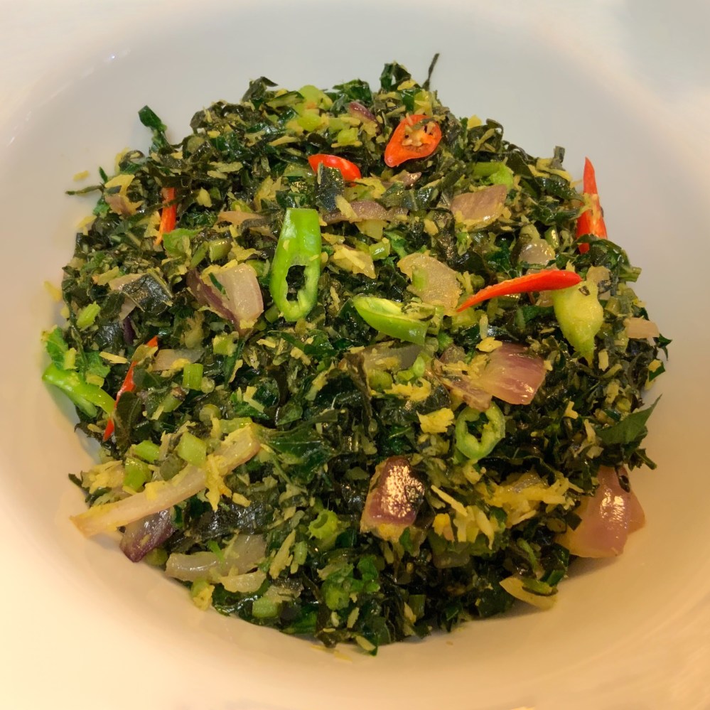 Mixed Green Mallum Posted by kitygardener on July 28, 2019October 4, 2019 Pumpkin, Sweet Potato & Cowpea Greens Ingredients: Pumpkin, Sweet Potato & Cowpea greens Onion, Chili, Coconut flakes, Turmeric, Salt, Black pepper, Cumin powder, Olive oil **** Share this: Click to share on X (Opens in new window) X Click to share on Facebook (Opens in new window) Facebook Like Loading... Related