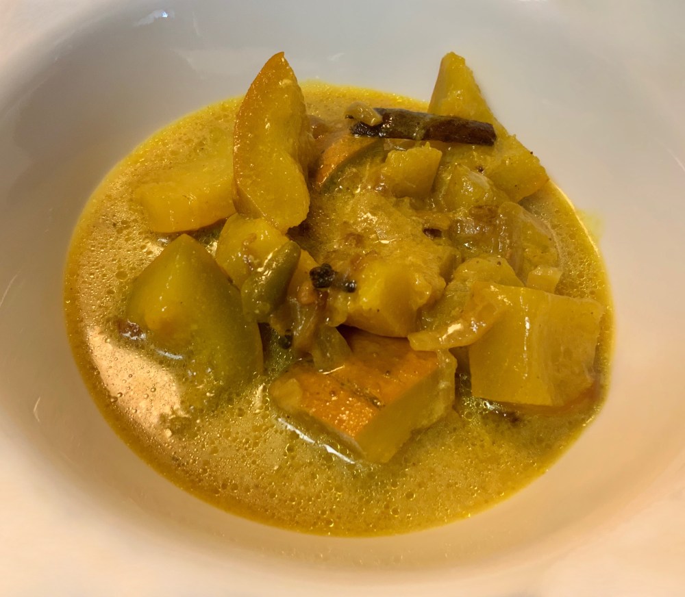 Pumpkin Curry Posted by kitygardener on July 28, 2019July 28, 2019 Ingredients: Pumpkin, Onion, Garlic, Cinnamon, Cloves, Cardamom, Fenugreek, Green chili, Curry powder, Turmeric, Salt, Almond milk, Water, Olive oil **** Share this: Click to share on X (Opens in new window) X Click to share on Facebook (Opens in new window) Facebook Like Loading... Related