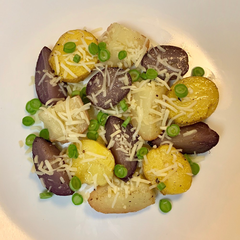 Potato Salad Posted by kitygardener on August 4, 2019 Pink, Yellow & Purple Mini Creamer Potato Salad Ingredients: Boiled pink, yellow & purple homegrown mini creamer potatoes, Olive oil, salt, Cheese, Green beans **** Share this: Click to share on X (Opens in new window) X Click to share on Facebook (Opens in new window) Facebook Like Loading... Related
