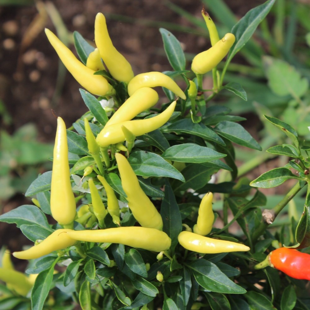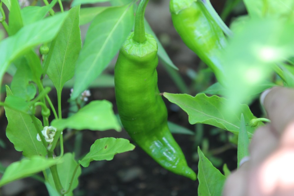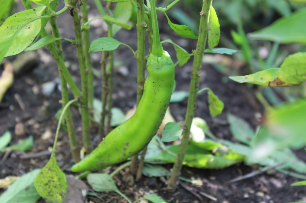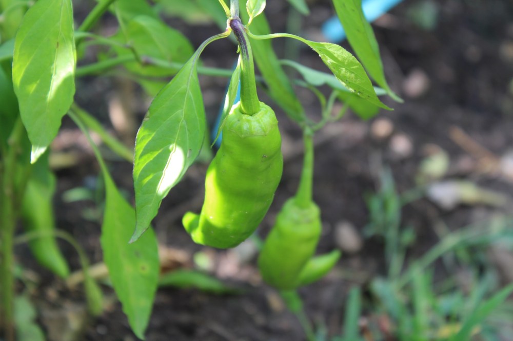This summer we grew two mild hot pepper varieties. They both have strong peppery aroma with low Scoville units. We raised them together with green onions and added cracked eggshells to prevent slug damages.