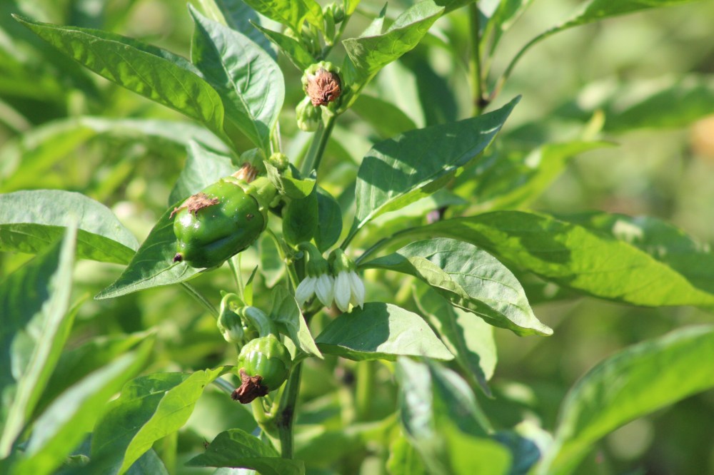 This year we grew bell pepper from store-bought heirloom plants. Before planting them on the pepper bed, we added powdered eggshells to the soil to prevent blossom-end rot disease. We also grew green onions as a pest repellent. During the hot summer, we watered our plants in the morning, to minimize the spread of fungal diseases and to keep the soil moist. In the evening we sprayed neem oil.