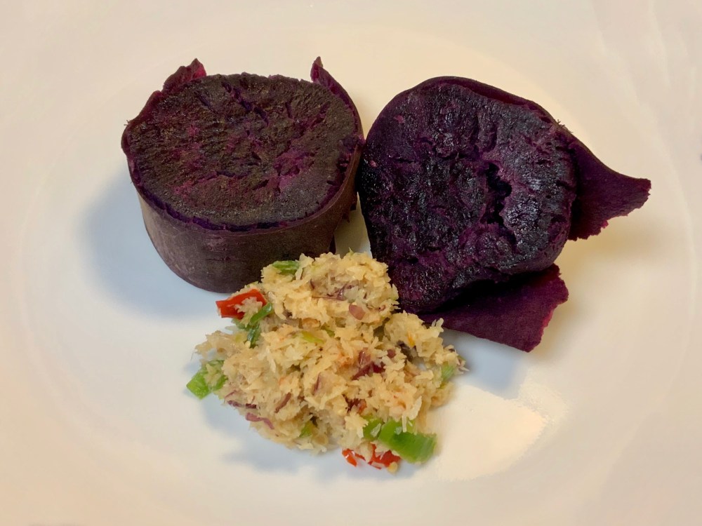 Steamed Purple Sweet Potato Posted by kitygardener on September 29, 2019 Ingredients: Homegrown purple sweet potatoes, Coconut Chili Sambal **** Share this: Click to share on X (Opens in new window) X Click to share on Facebook (Opens in new window) Facebook Like Loading... Related