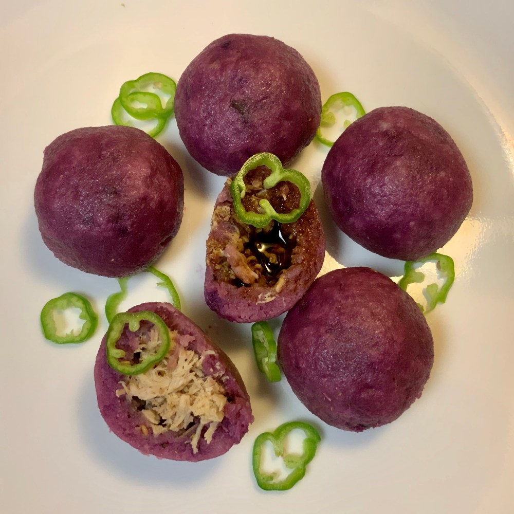 Sweet Potato Dumplings Posted by kitygardener on October 2, 2019October 2, 2019 Ingredients: Purple sweet potatoes, Rice flour, Olive butter, Chicken, Salt, Fuyu pepper, Soy sauce **** Share this: Share on X (Opens in new window) X Share on Facebook (Opens in new window) Facebook Like Loading... Related