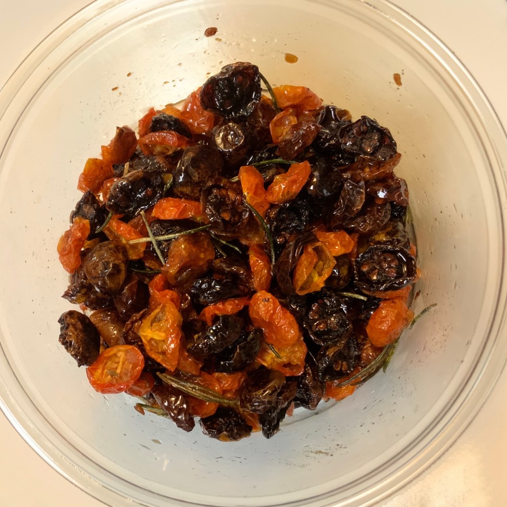 Roasted Cherry Tomatoes Posted by kitygardener on October 11, 2019 Ingredients: Cherry tomatoes, Salt, Garlic powder, Rosemary, Sunflower oil, (Baked – 350F, 40-45 minutes) Olive oil **** Share this: Click to share on X (Opens in new window) X Click to share on Facebook (Opens in new window) Facebook Like Loading... Related