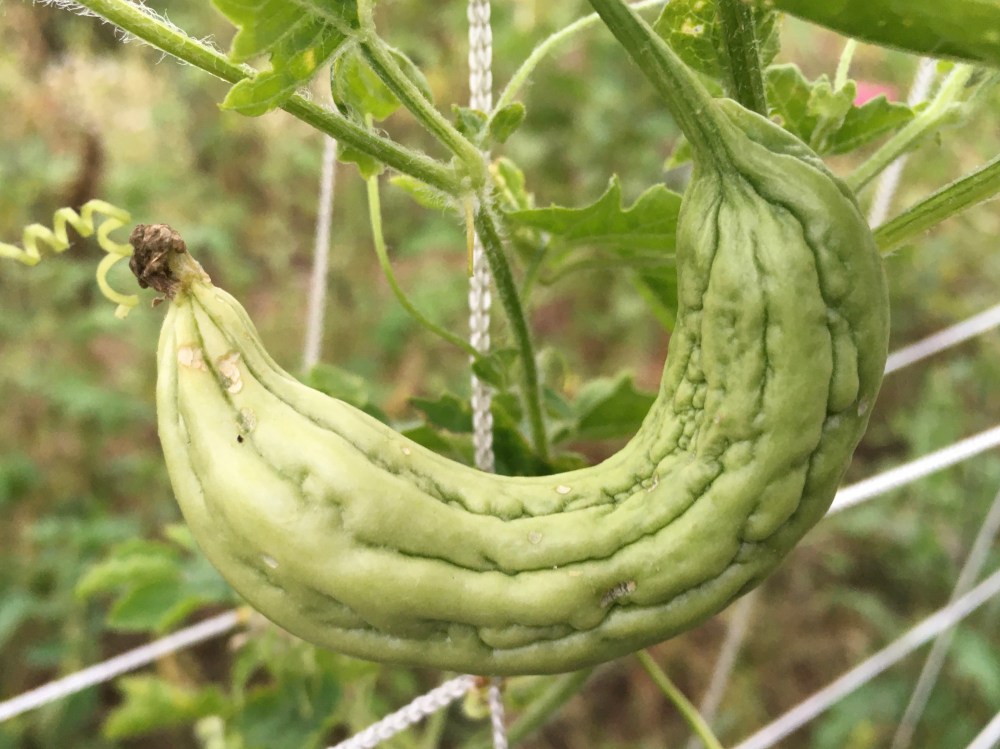 Although it was not a super success, our very first experience of growing bitter melon was exciting. We were a little bit late to plant bitter melon on our plot, but anyhow we were lucky enough to taste homegrown bitter melon just before the end of the season. Therefore it is worth to start seedlings indoors a few weeks before the growing season.