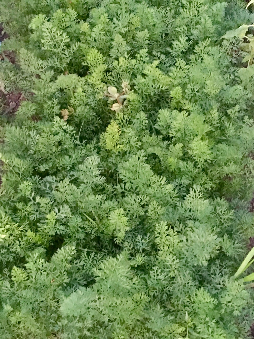 Butterfly caterpillars love carrot tops, other than that carrots do not get any pest damage. But unfortunately, this year, very few monarch butterflies were spotted in our garden.