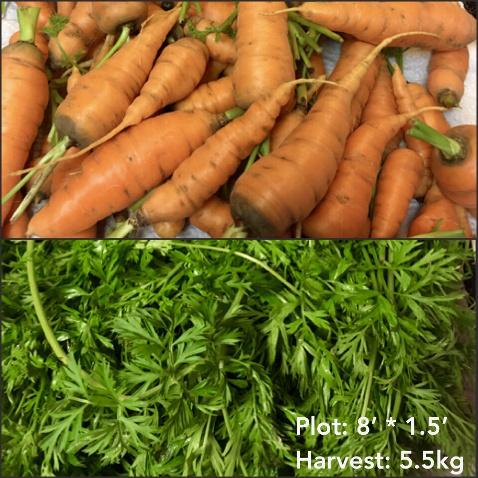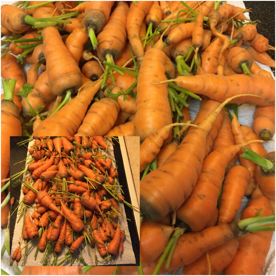 This summer, we grew two varieties of carrots; Danvers and Scarlet Nantes. Carrot is one of the easiest vegetables to grow, which gives a high yield. They need regular watering and well-drained loose soil. After three and a half months, carrots are ready to harvest.