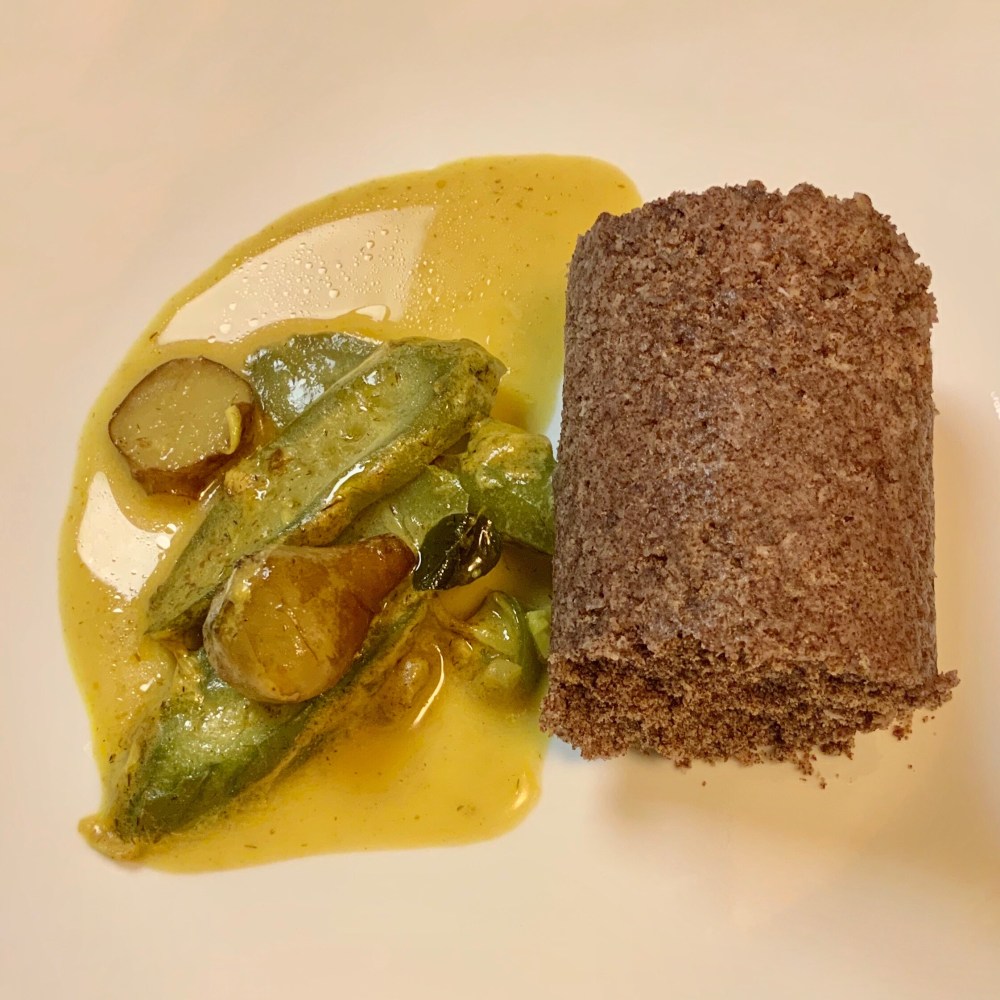 Boiled sunchoke, Angled luffa, Cinnamon, Cloves, Fenugreek, Curry leaves, Lemongrass, Onion, Garlic, Ginger,