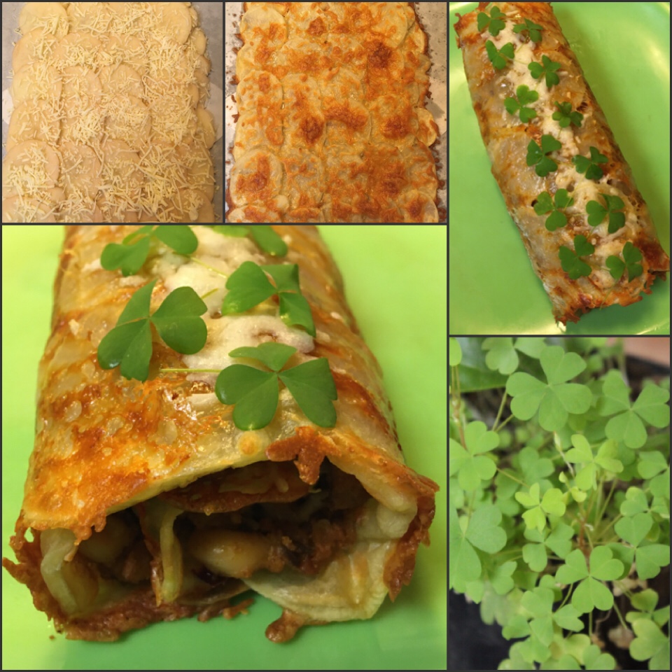 Wood Sorrel, Potato, Cowpea, Cheese, Onion, Ginger, Garlic, Rosemary Powder, Sage Powder, Taco Seasoning, Salt, Olive Oil